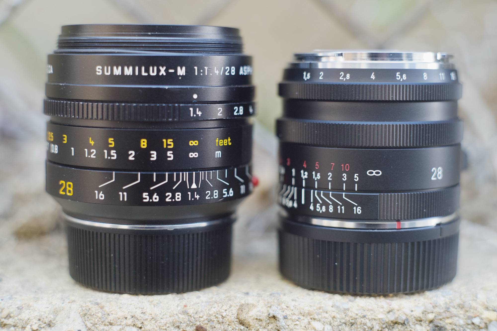 - The Voigtlander 28mm f/1.5 ASPH images were slightly more contrasty.